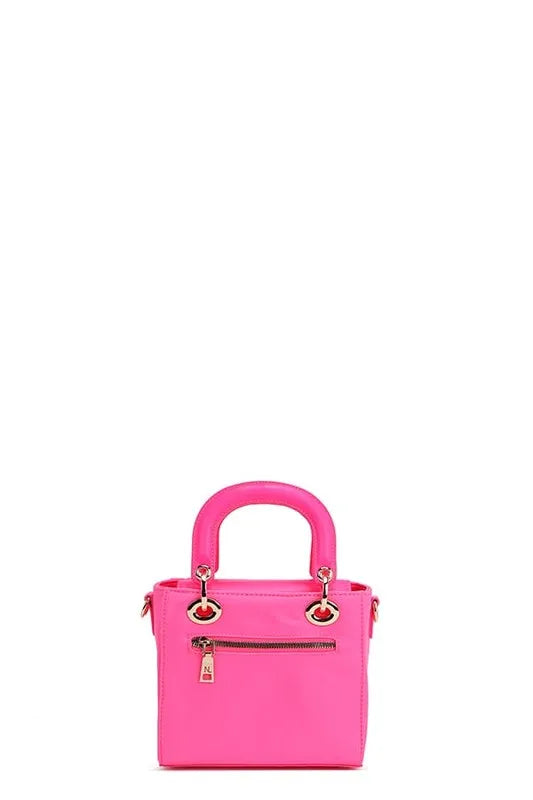 Our color patch handbag is a striking, compact statement piece with a sleek square silhouette. Vibrant travel-inspired patches and a playful crossbody strap add a pop of color and personality, letting you wear it two ways: handheld or hands-free!