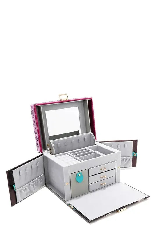 A true work of art with an opulent rhinestone finish, this stunning jewelry box offers dedicated sections to beautifully display and organize your treasures while serving as a glamorous statement piece for your vanity.