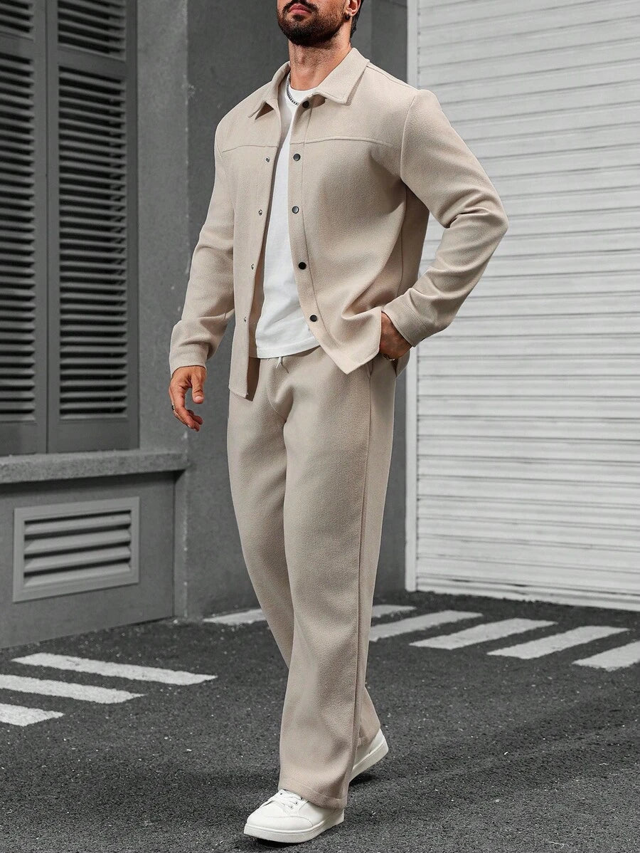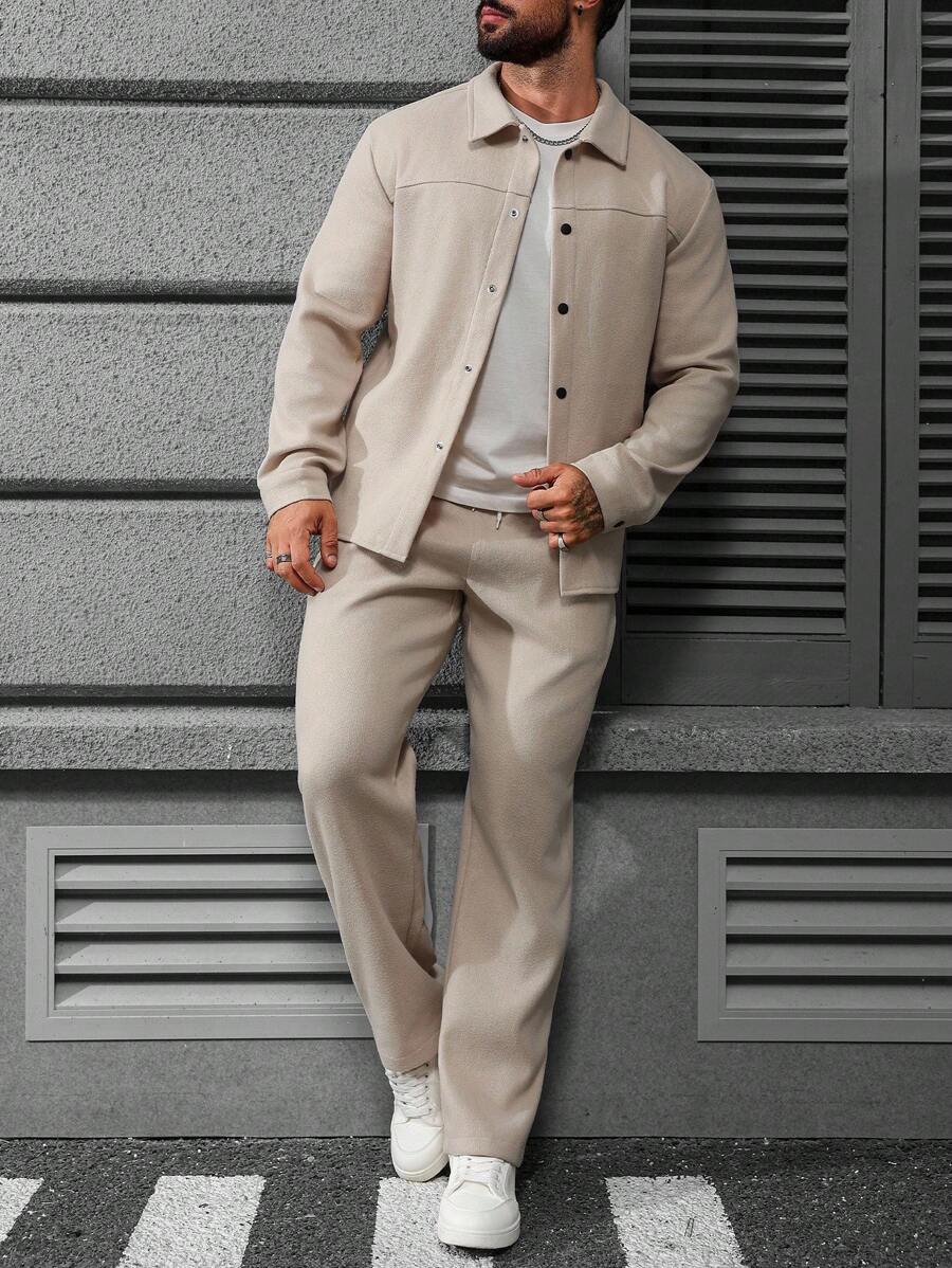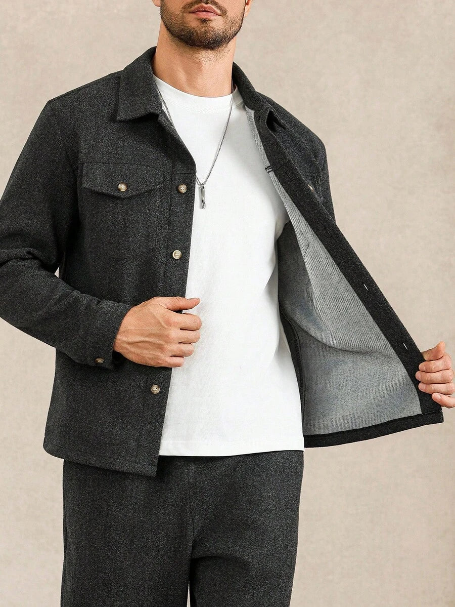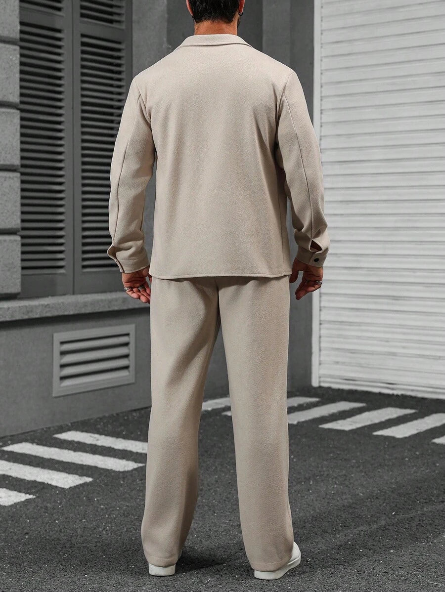 Manfinity Homme Men's Solid Color Casual Long Sleeve Jacket And Pants Set Men Two Piece Set Men 2 Piece Set Two Piece Set Men Mens Wool Blend Two Piece Outfit
