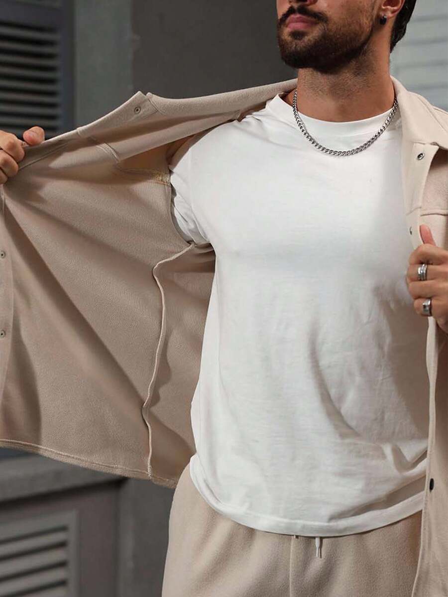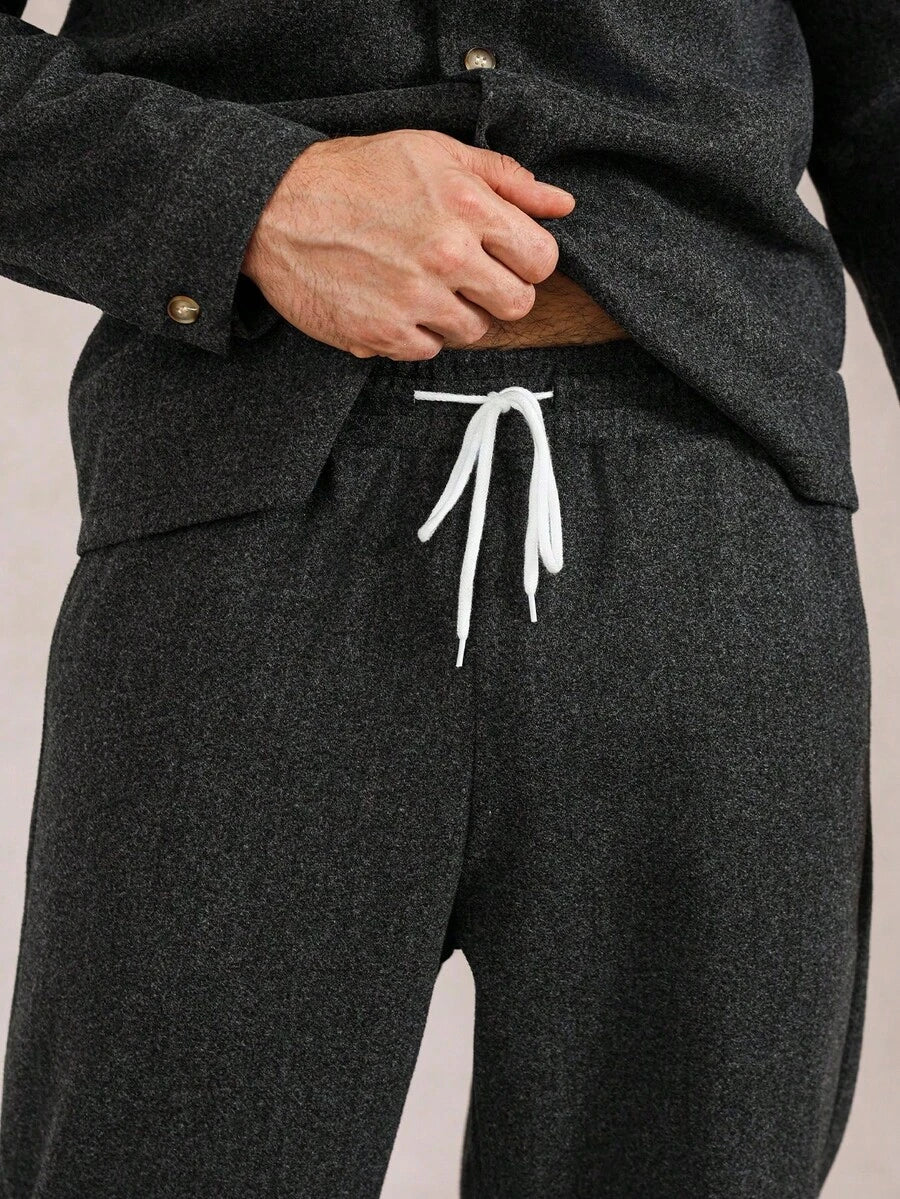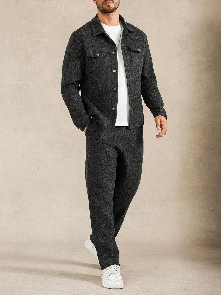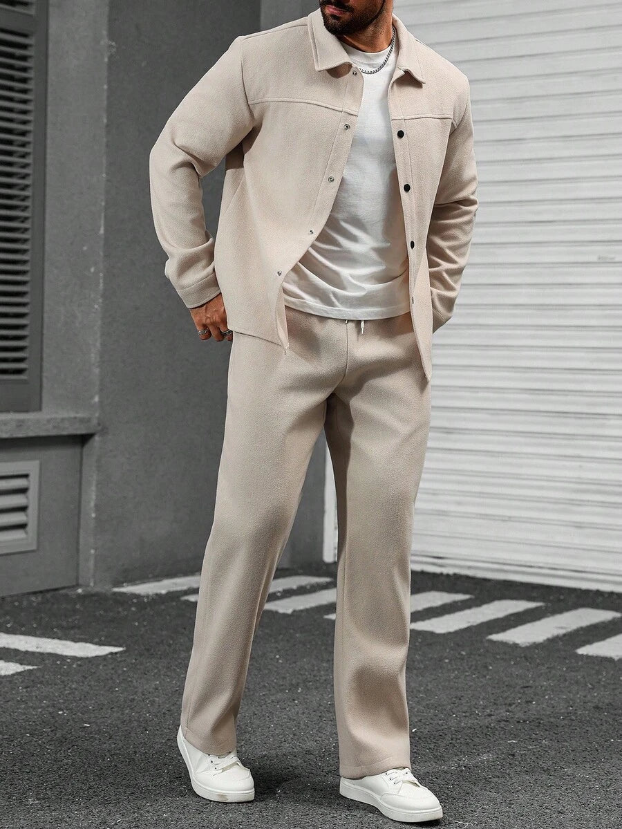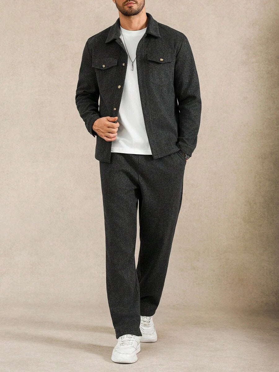 Manfinity Homme Men's Solid Color Casual Long Sleeve Jacket And Pants Set Men Two Piece Set Men 2 Piece Set Two Piece Set Men Mens Wool Blend Two Piece Outfit