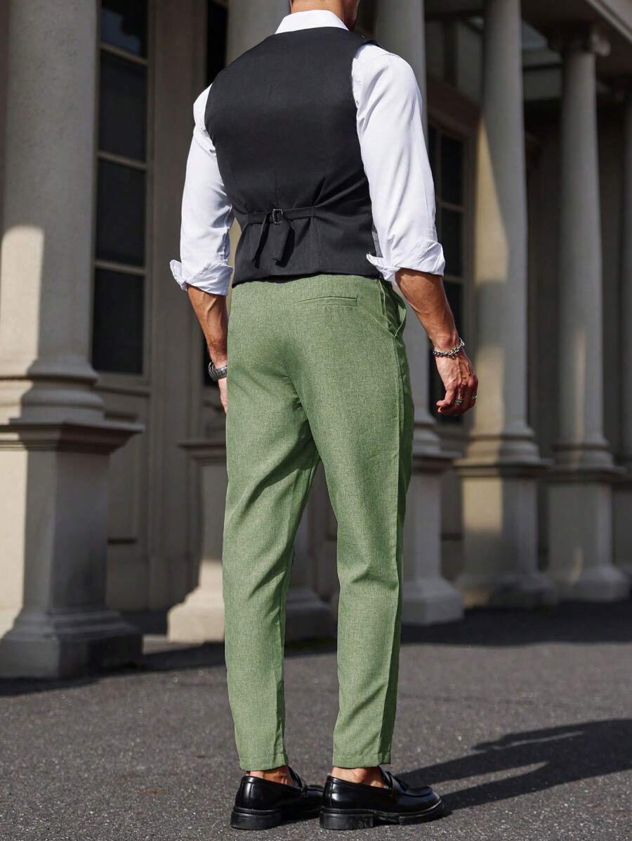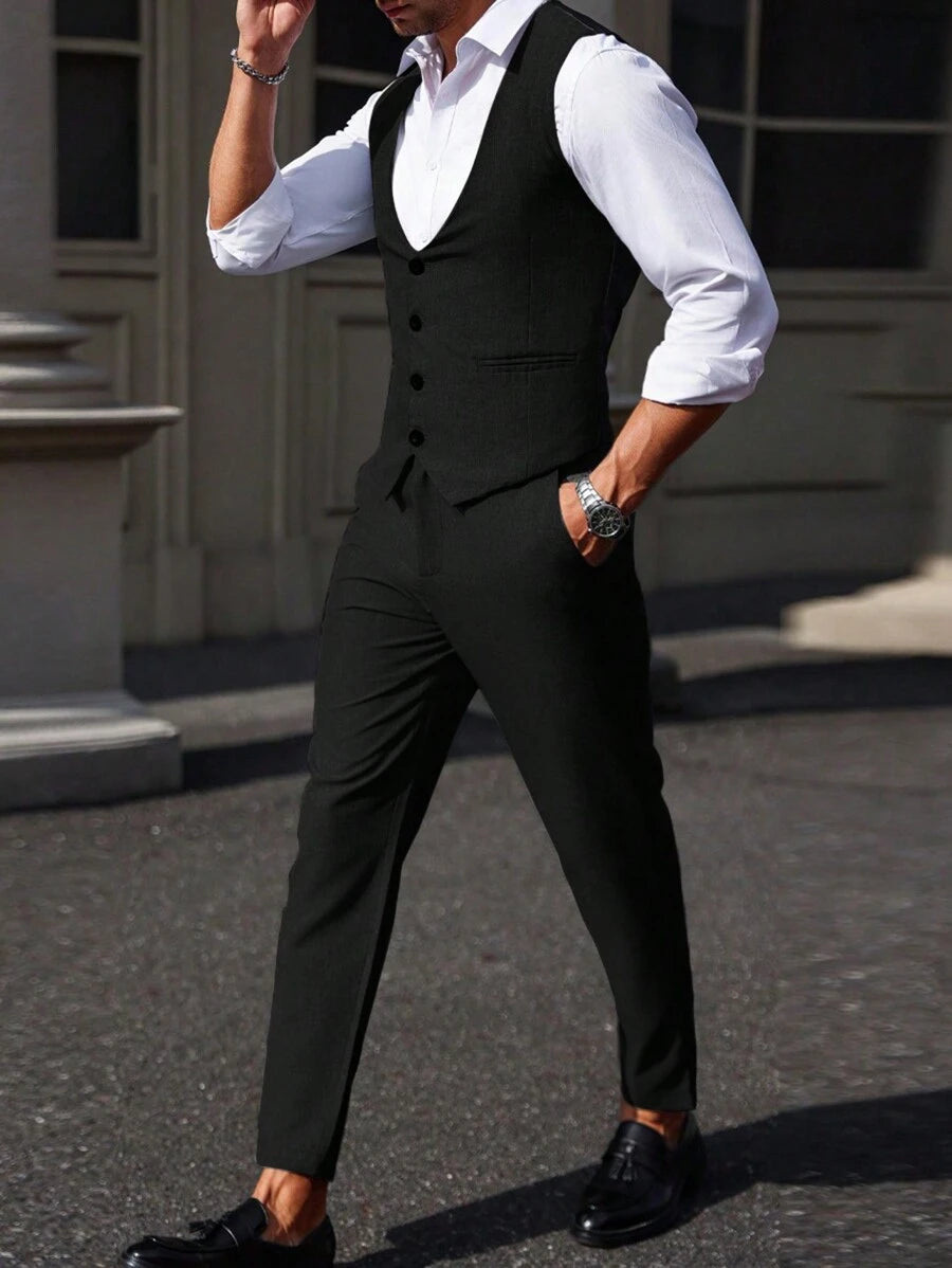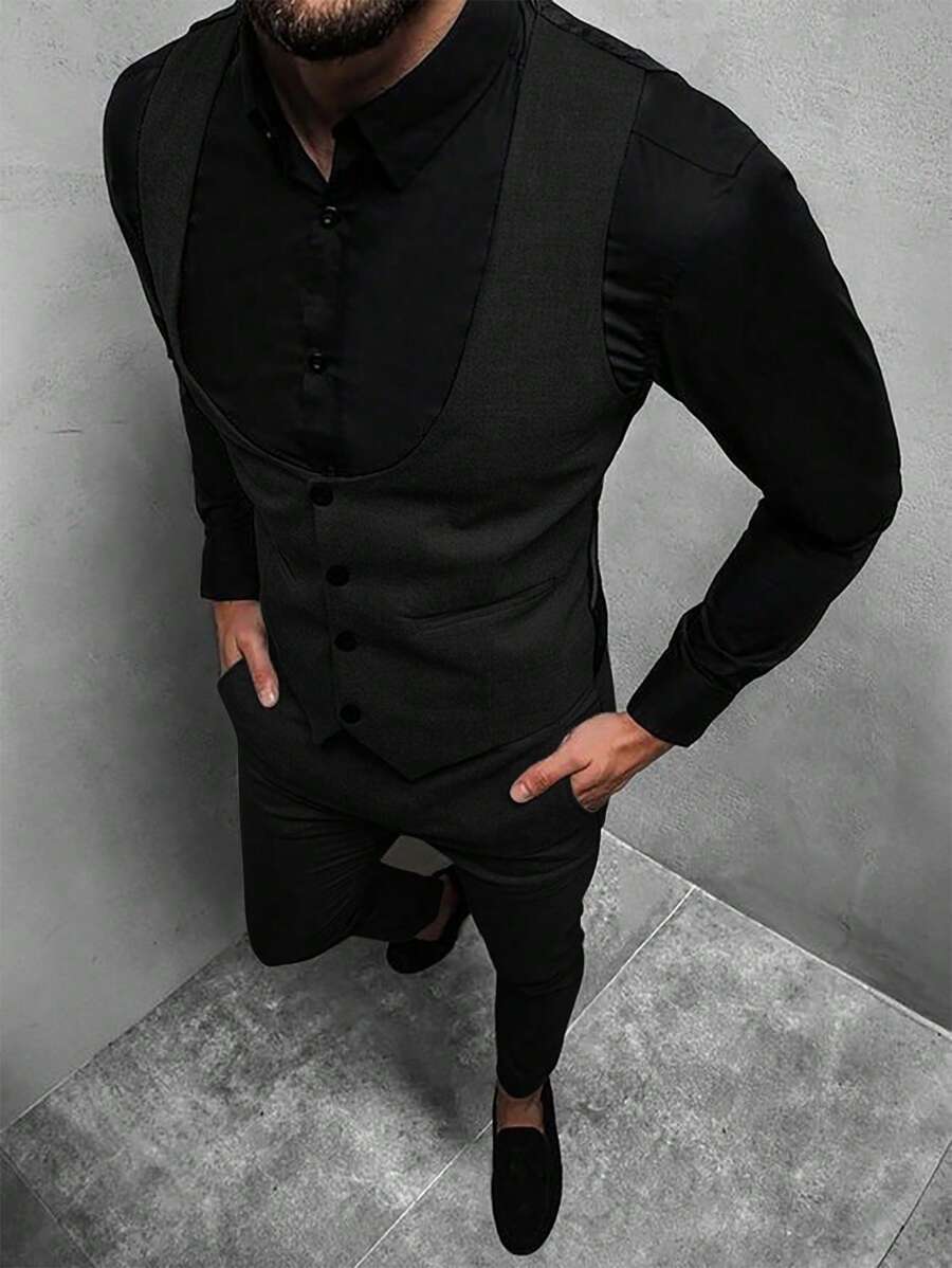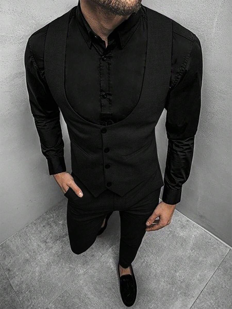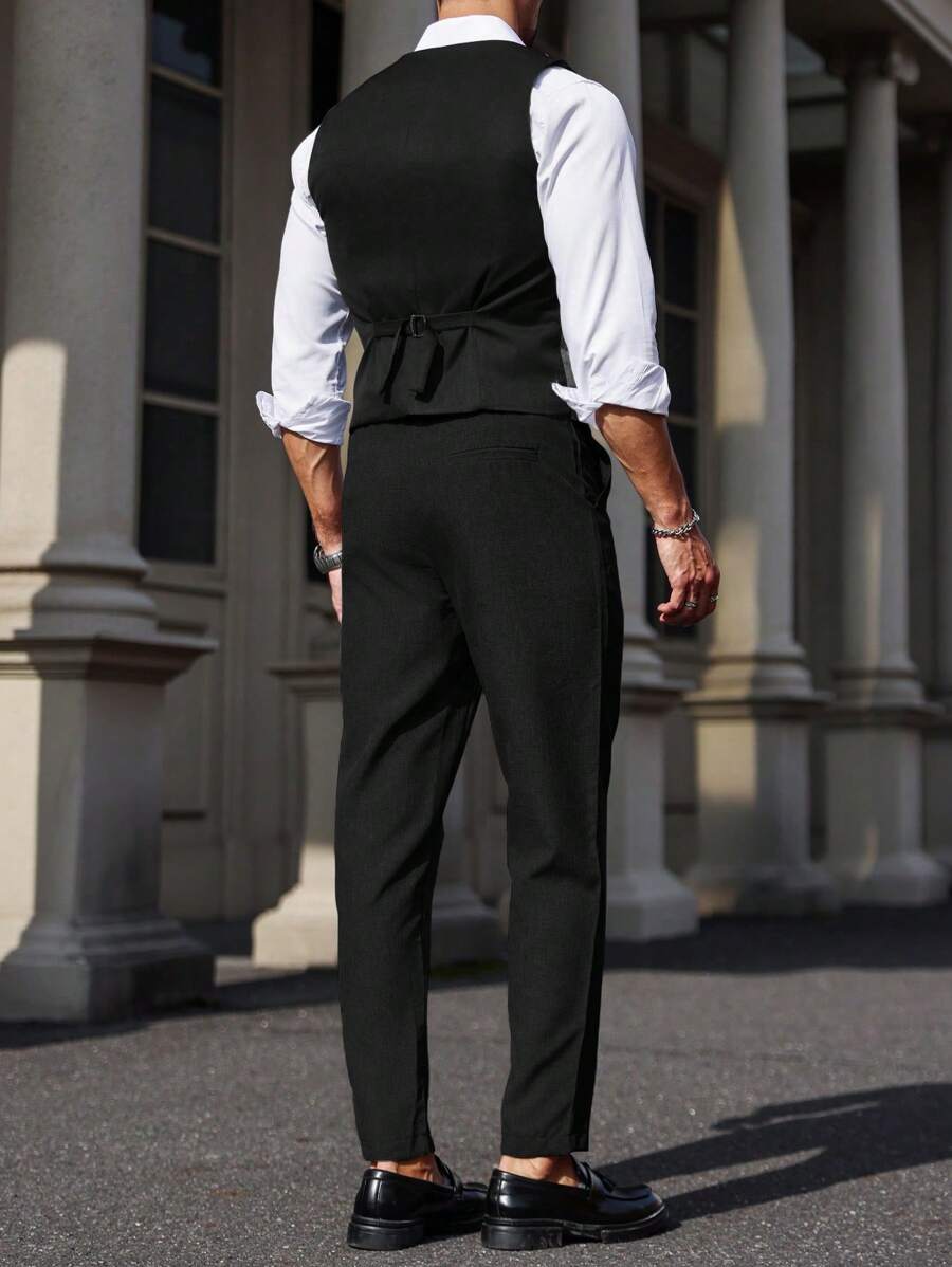 Manfinity Mode Men's Solid Color Sleeveless Top And Pants Suit Set, Men Beige Suit, Men Dress Vest, Men Suit Vest, Men Elegant Outfit